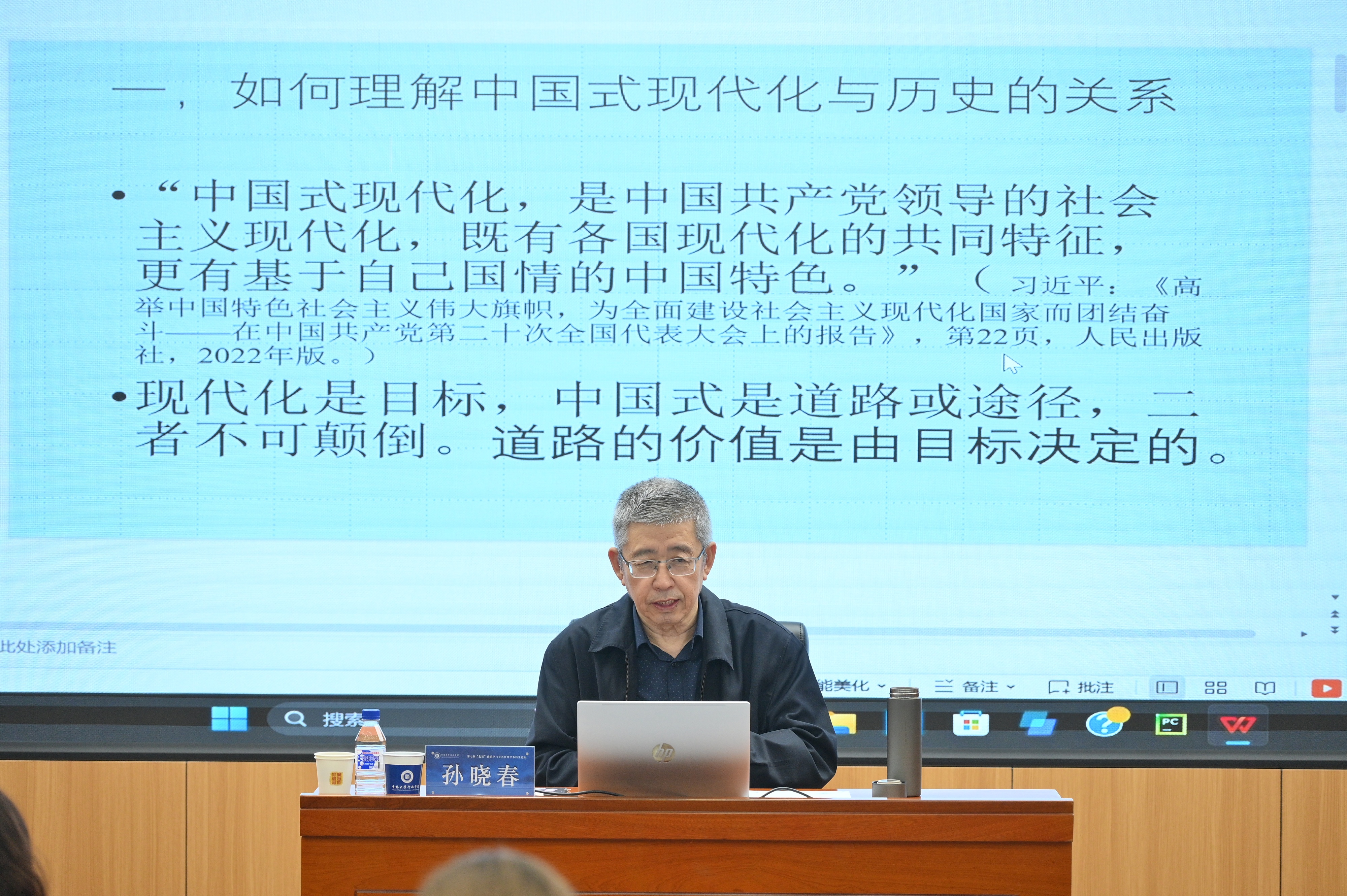 孙晓春教授以“中国现代化视域下的政治思想史研究”为题面向广大同学做专题讲座。从“如何理解中国式现代化与历史的关系、政治思想史研究为什么重要、政治思想史研究应该解决的问题”三方面,为与会同学们展现政治思想史研究的魅力。