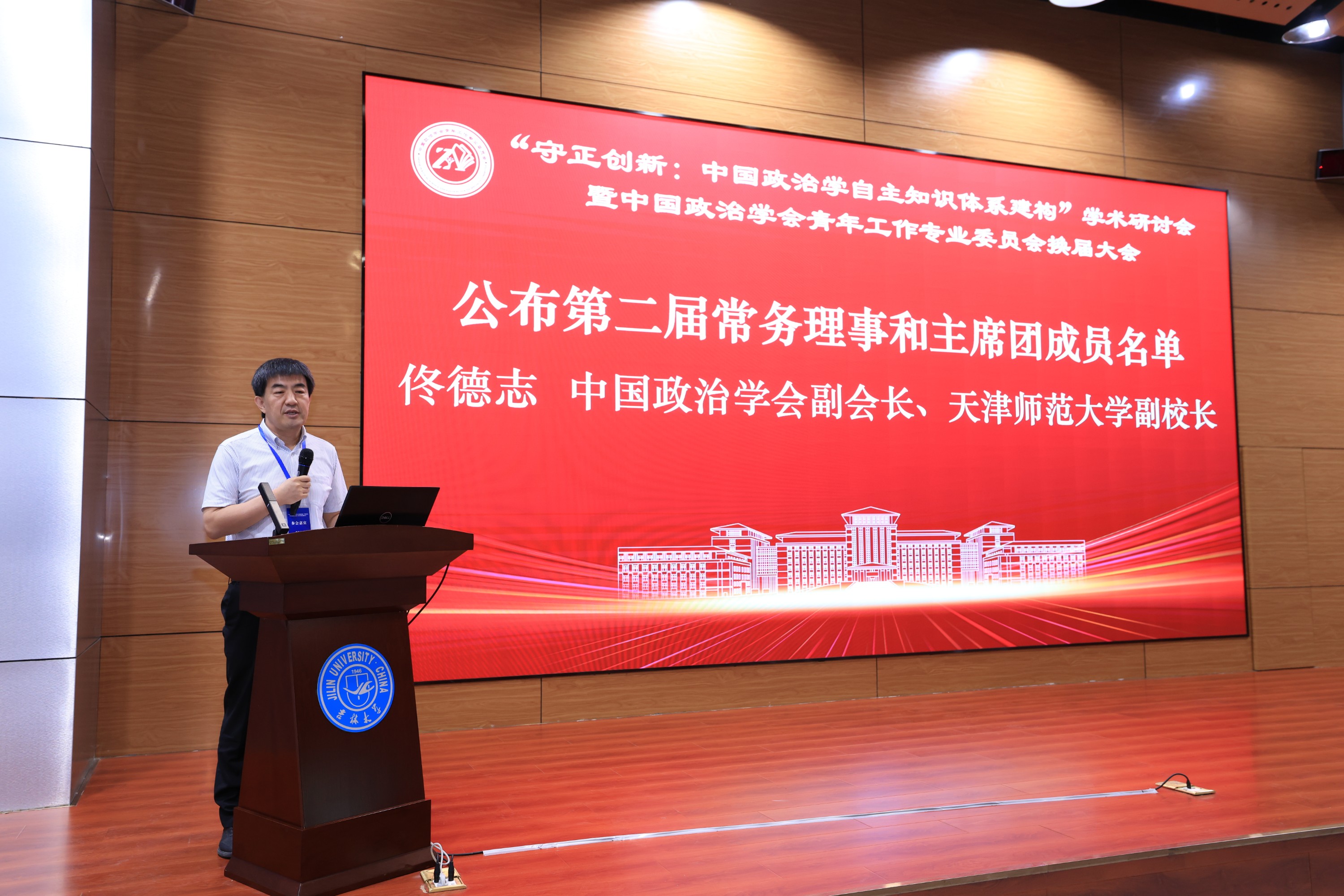 将一如既往拓展学术研究交流合作。中国政治学会副会长、天津师范大学副校长佟德志教授代表中国政治学会会长李慎明研究员、中国政治学会常务副会长张树华研究员对会议召开致以热烈祝贺,对中国政治学会青年工作专业委员会第一届理事会工作予以充分肯定,对新一届青年工作专业委员会理事会、主席团开展工作表达了期待,提出各位青年政治学人要积极投身时代大潮,摆正心态、主动作为、广泛协作、积极行动。