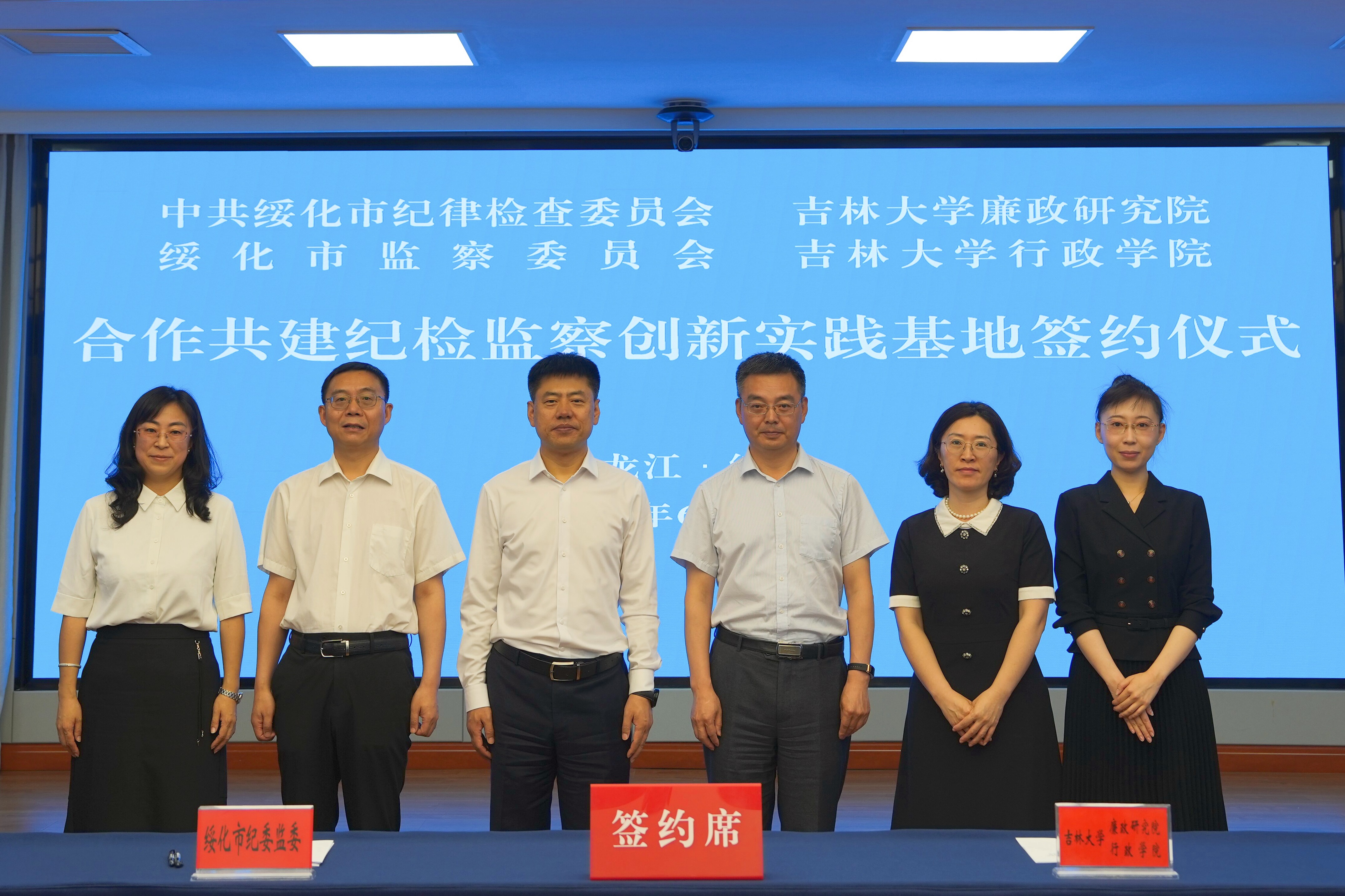 党委书记陈希贵,党委副书记史慕华,副院长、廉政研究院院长刘畅,绥化市委常委、市纪委书记、市监委主任张铁民及当地纪检监察系统相关负责人共同出席。仪式由张铁民主持,双方代表签署共建协议,标志着“纪检监察创新实践基地”正式落地。
