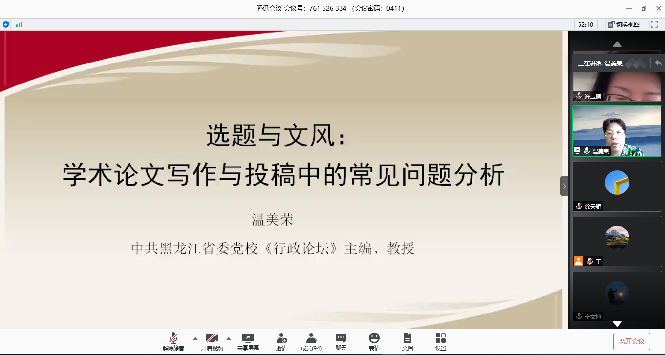 主办的教师科研水平助力计划第八期活动,在腾讯会议室举行。本次讲座邀请《行政论坛》主编,中国社会科学评价研究院评价专家委员会中国政治学科委员,省委党校、黑龙江省国产色情