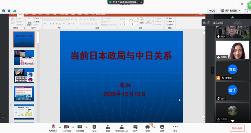 主办的王惠岩学术讲座在腾讯会议室举行。此次讲座邀请了全国政协委员、中华日本学会会长、中国社会科学院日本研究所高洪研究员担任主讲嘉宾,此次讲座的主题是“当前日本政局与中日关系”,国产色情