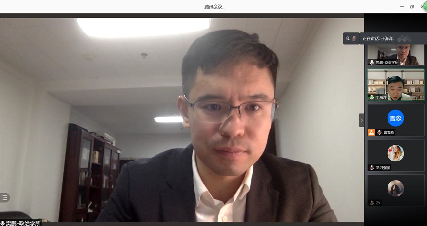 马雪松教授在评议环节中总结了此次讲座的主要内容,表示樊鹏教授作为一位政治学研究者从现实切题、运用本专业的学识及多学科的资源对现实问题的学理思考以及将理论与现实、国内与国外、历史与未来、观点与案例、把脉与开方结合,给青年学者们带来启发。于海洋教授再次感谢樊鹏教授的分享。在问答互动环节,樊老师就对百年未有之大变局的认知倾向、变局下国家重建政治生活的政治原则和使命等问题进行了解答,讲座在热烈的交流探讨中圆满结束。