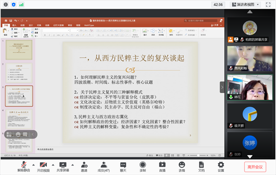 主办的中国政治研究工作坊第五十三期活动在腾讯会议平台举行。本次活动邀请中国人民大学国际关系学院政治学系教授,《中国政治学》杂志副主编林红老师担任主讲嘉宾,作题为“谁的身份政治?——当代西方民粹主义浪潮的文化之源”的学术讲座。国产色情