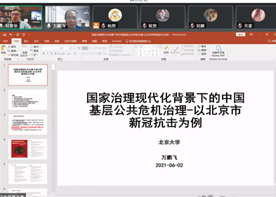 刘雪华教授在总结环节中再次感谢万鹏飞副教授的倾情分享。他指出,万鹏飞副教授的讲座内容既包括核心概念的界定与经典文献的梳理,也体现了对现实问题的提炼、反思,以及上升到学理高度的解读、回应。万鹏飞副教授基于对北京市抗击新冠的事件回顾与个案考察,深入剖析了北京市基层公共危机治理模式,并提出未来公共危机治理有待进一步思考的问题,对于学术研究者和实务工作人员都具有突出的启迪意义与启发价值。本次讲座在热烈的氛围中圆满结束。