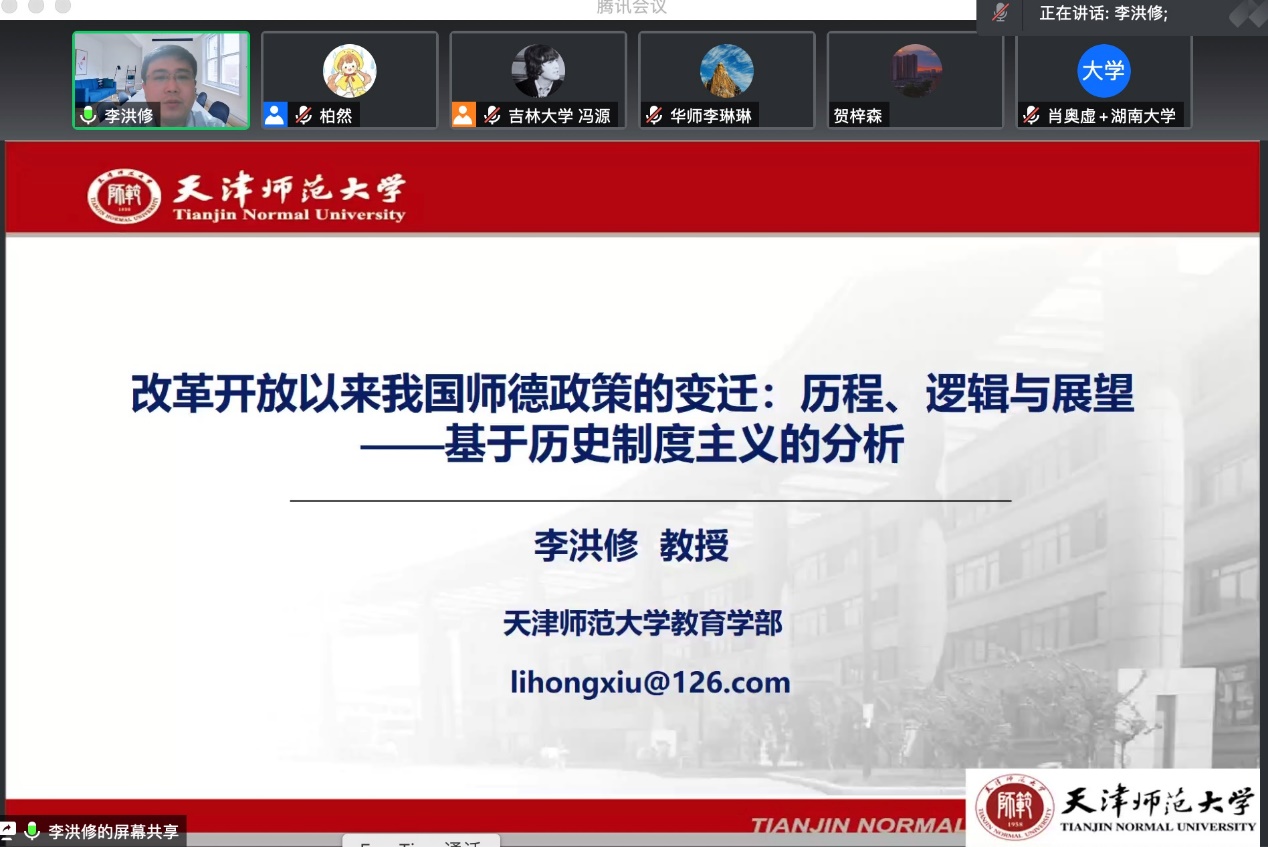 高等教育研究所副所长、天津师范大学教育学部李洪修教授为主讲嘉宾,进行题为“改革开放以来我国师德政策变迁的历史制度主义分析:历史、逻辑与展望”的学术讲演。本次活动由国产色情