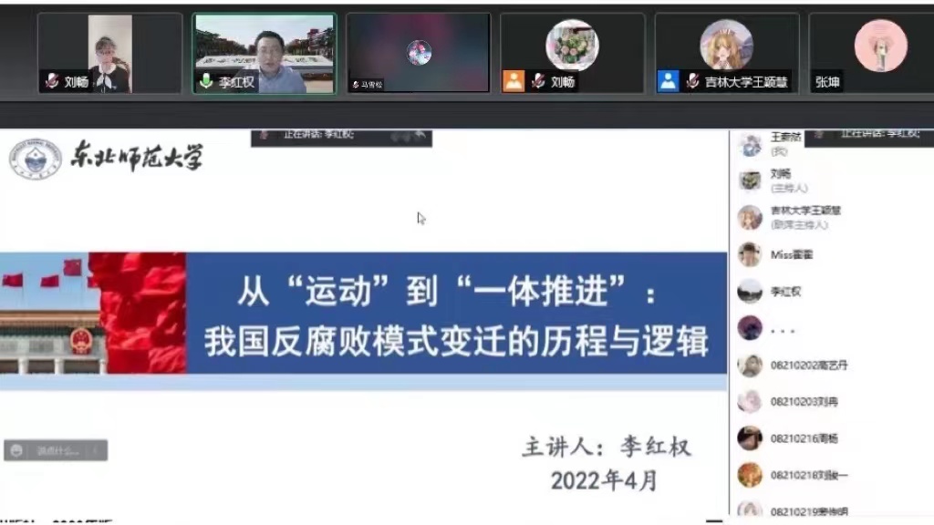 第6期清晏廉政名家讲坛学术活动在腾讯会议平台举行。东北师范大学政法学院院长、教授、博士生导师、东北师范大学廉政研究中心主任、中国廉政学会副会长、中国政治学会理事、吉林省政治学会副会长李红权教授受邀担任主讲专家,作题为“从‘运动’到‘一体推进’:我国反腐败模式变迁的历程与逻辑”的学术讲座。国产色情