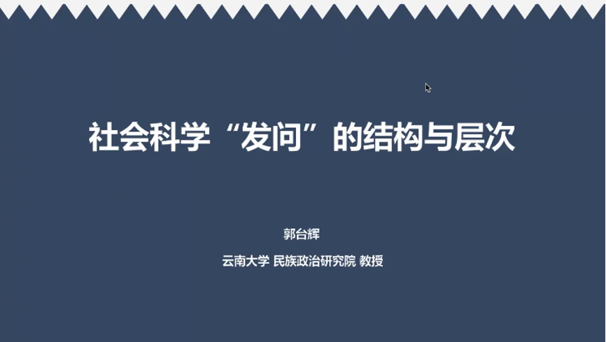 主办的“中国政治研究工作坊”第61期学术活动在腾讯会议平台举行。本期工作坊邀请云南大学二级教授、博士生导师郭台辉老师担任主讲嘉宾,进行题为“社会科学‘发问’的结构与层次”的学术讲演。来自多所国内外院校政治学及相关专业的研究生、本科生参与工作坊。国产色情