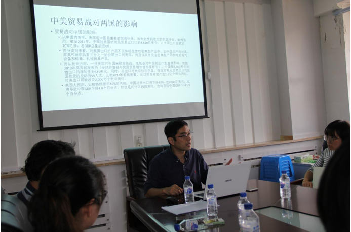 莘莘学子进行了学术演讲,演讲的主题是“特朗普政府的中美贸易探戈舞”,本次学术讲座由于海洋教授担任活动评论人和主持人。演讲中谭教授就中美贸易的发展变化问题详细阐述,用大量有效数据证实中美之间稳定的贸易关系。最后老师与在座的同学们进行了热烈的交流与互动,同学们就自己的兴趣提出了许多有价值的问题,谭教授针对这些问题作出了更详尽的解说,为这次的学术交流活动画上了圆满的句号。此次学术演讲活动获得了极大的成功,并且受到了广大师生的好评。