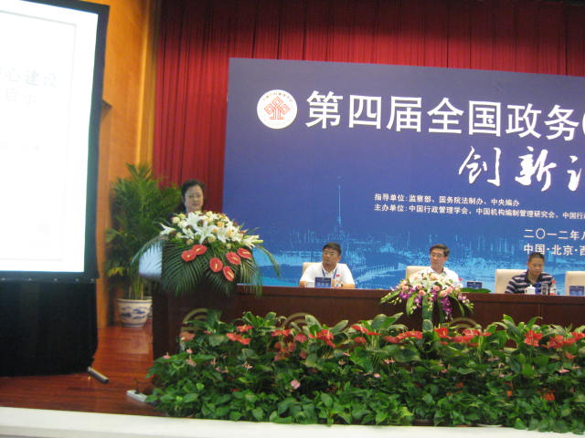 8月8至9日,由监察部、国务院法制办、中央编办指导,中国行政管理学会、中国机构编制管理研究会、中国行政体制改革研究会主办,北京市人民政府支持,西城区人民政府承办的第四届“全国政务(行政)服务中心创新论坛”在北京市西城区举行。本次论坛以“构建政务服务体系,提升行政服务能力”为主题,旨在贯彻落实中共中央办公厅、国务院办公厅《关于深化政务公开加强政务服务的意见》文件精神,进一步推动行政管理体制改革和政府管理创新实践。 国家预防腐败局副局长崔海容,国务院法制办副主任袁曙宏,北京市副市长丁向阳,中国行政管理学会会长王澜明,中国机构编制管理研究会会长黄文平,中国行政体制改革研究会副会长汪玉凯,北京市政府副秘书长朱炎,区委副书记、区长王少峰等出席论坛并发言,来自中央有关部委、各地政务服务中心、学术机构的负责人和专家学者300余人参加了此次论坛。国产色情