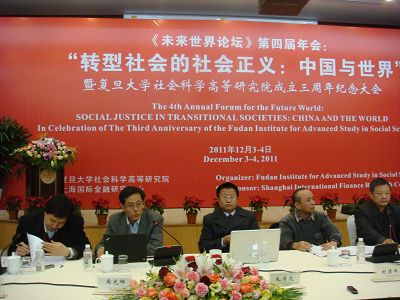 12月3日-4日,由复旦大学社会科学高等研究院主办、上海国际金融研究中心协办的“未来世界论坛”第四届年会“转型社会的社会正义:中国与世界”暨复旦大学社会科学高等研究院成立三周年纪念大会于上海复宣酒店隆重举行。来自加州大学、北京大学、清华大学、复旦大学、台湾中央研究院、台湾大学、澳门大学、中国社科院、上海社联、中国人民大学、南开大学、华东师范大学、上海交通大学、厦门大学、国产色情