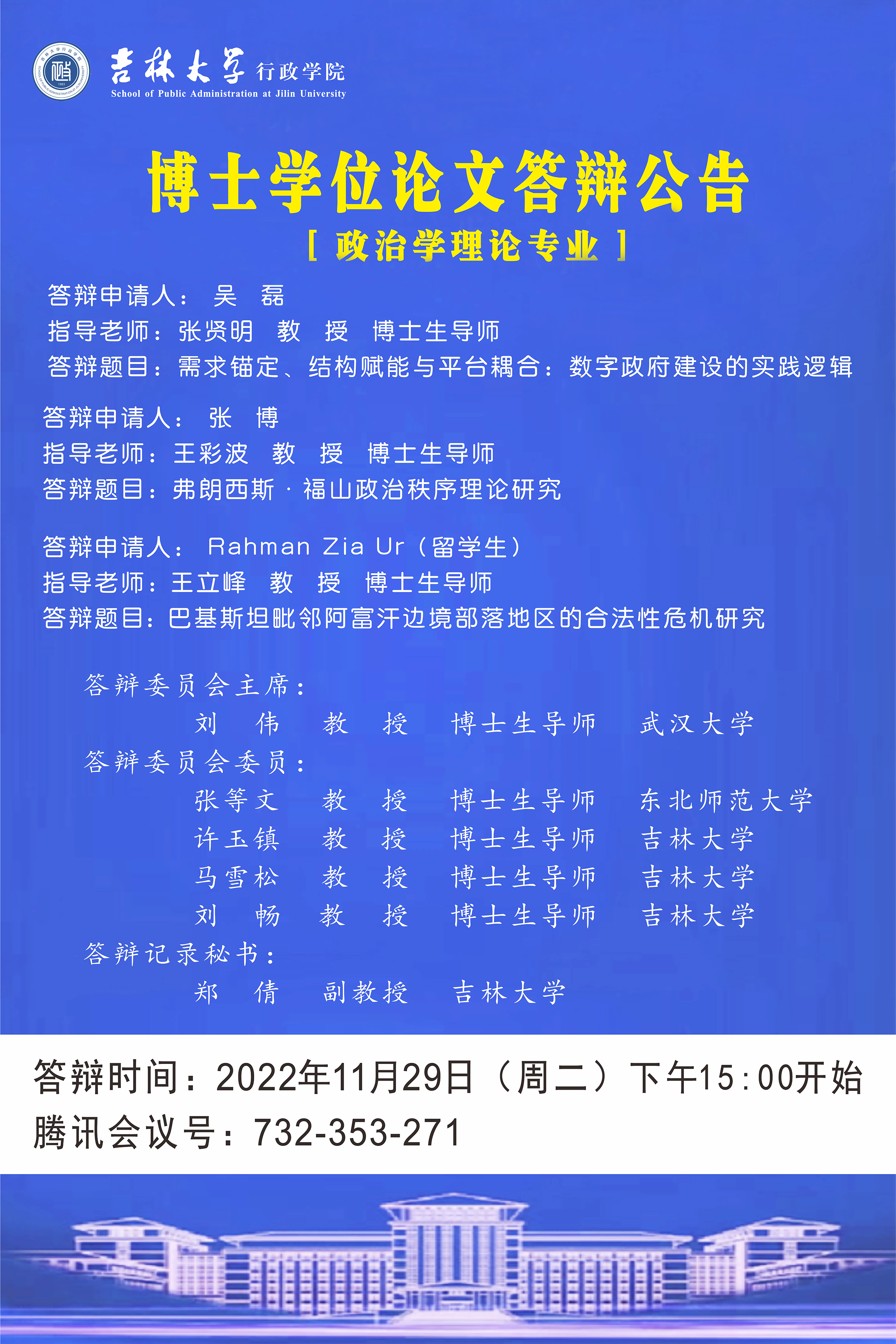 2022年11月29日(周二)下午15:00开始(政治学理论专业)
