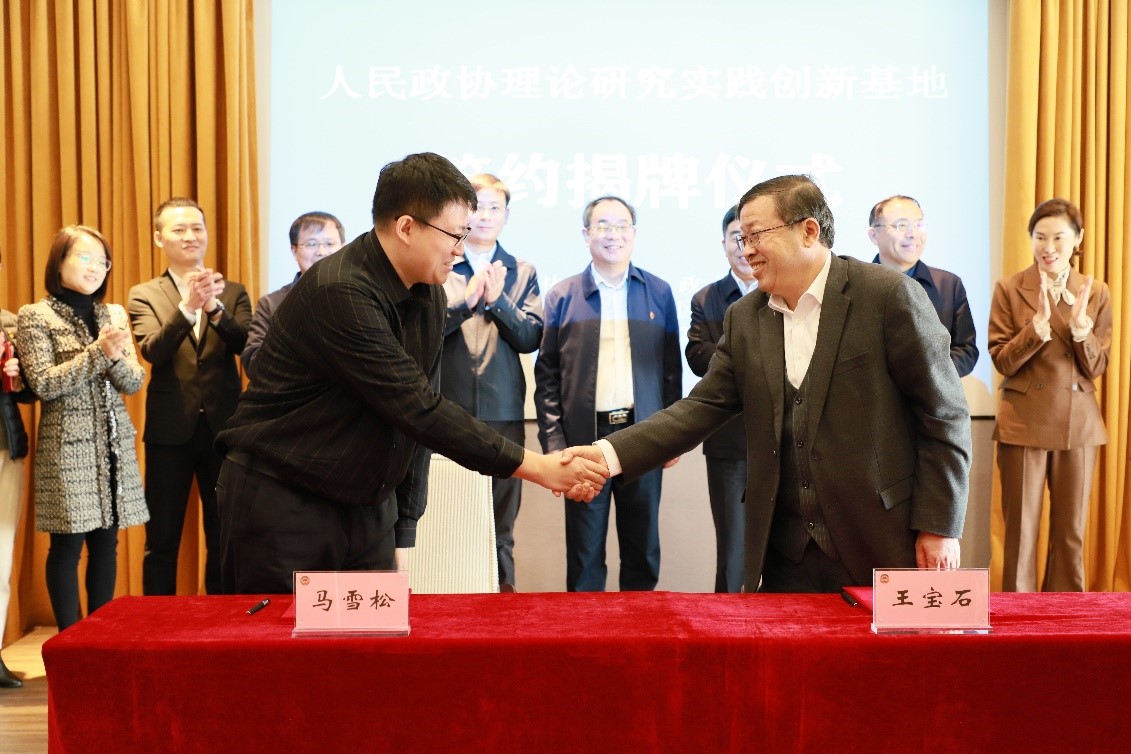 副院长马雪松教授、九台区政协副主席王宝石作为双方代表签署协议;随后,双方领导共同为人民政协理论研究实践创新基地揭牌。人民政协理论研究实践创新基地的设立,为我院学子的校外社会实践和调研工作提供了新的平台,是国产色情