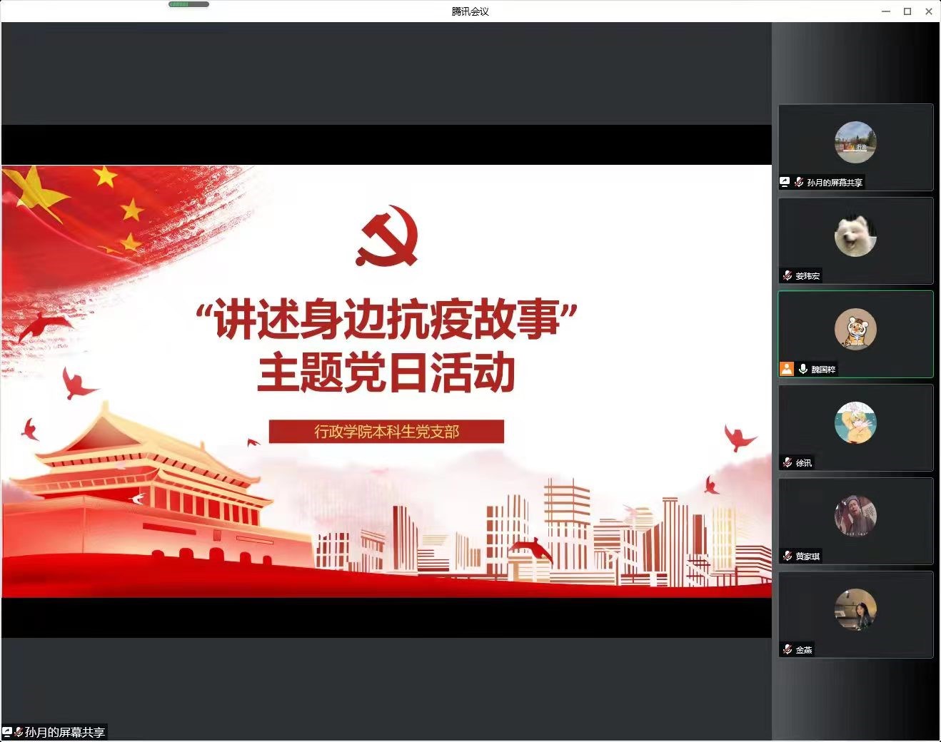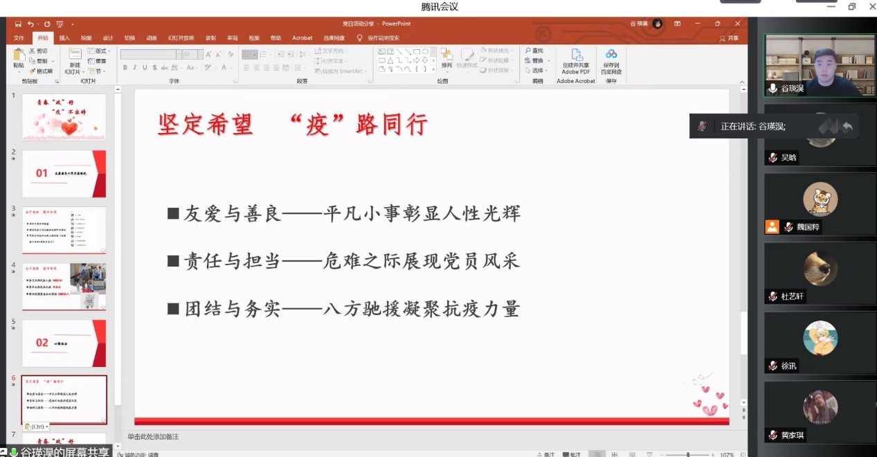 本科生党支部于5月25日开展“讲述身边抗疫故事”主题党日活动。党支部全体党员参加活动。本次活动由支部委员魏国粹主持。