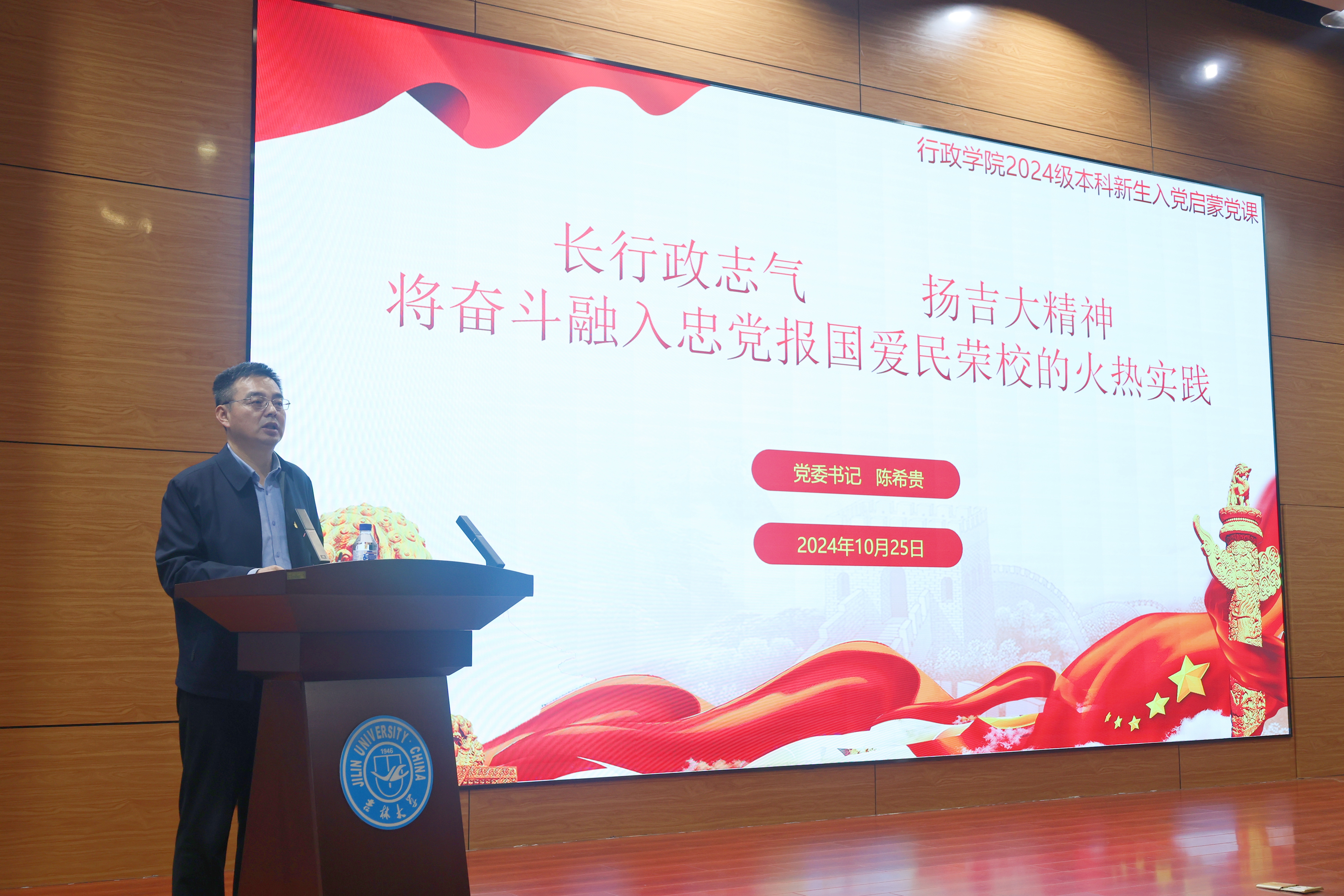 党委书记陈希贵在国际学术大讲堂为2024级本科新生讲授入党启蒙党课。