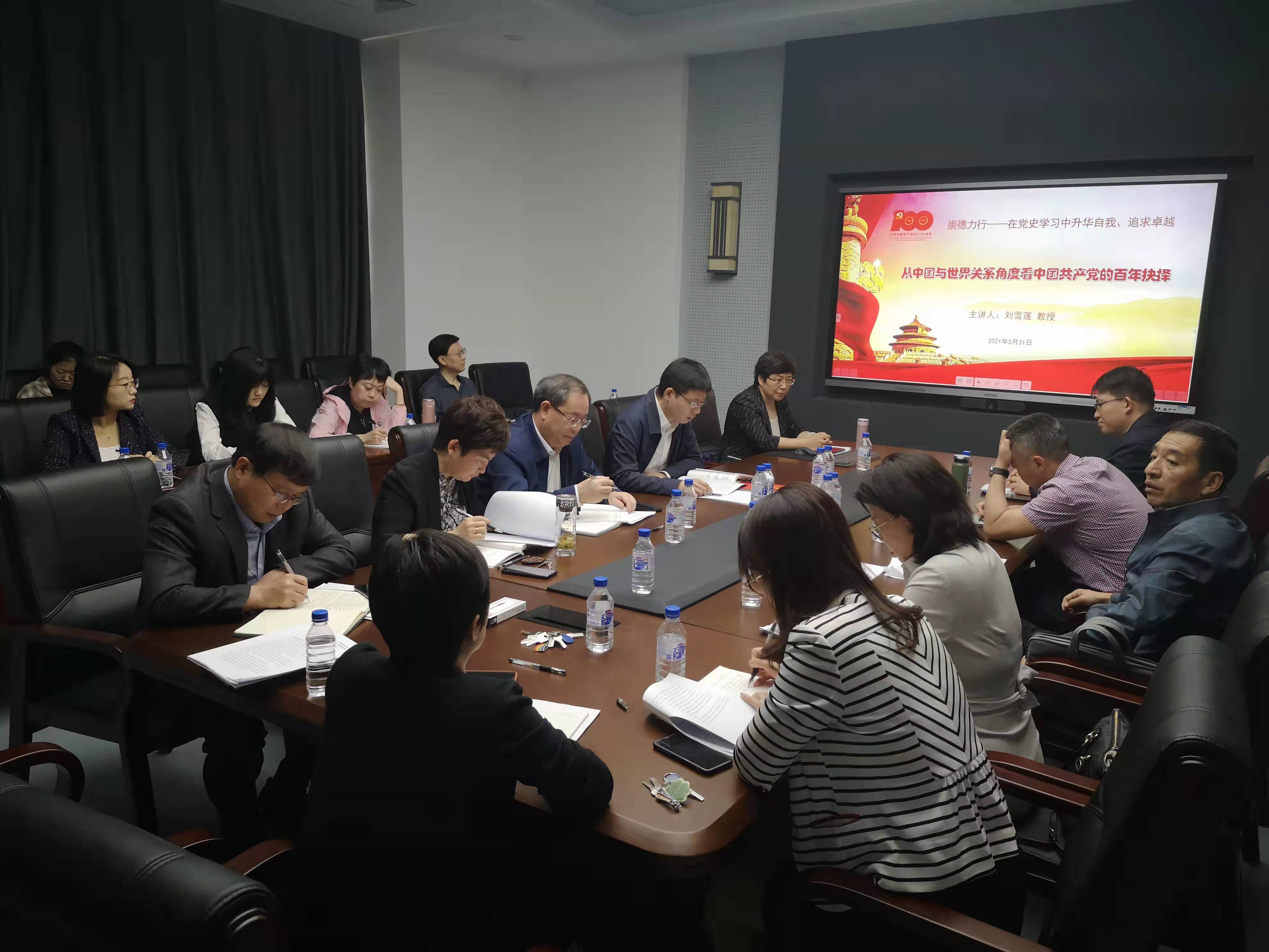 按照国产色情 党委理论学习中心组党史学习教育第一阶段学习计划,5月31日上午,国产色情 党委理论学习中心组在东荣大厦B304会议室召开“崇德力行——在党史学习中升华自我,追求卓越”专题学习研讨会。学院邀请刘雪莲教授做题为“从中国与世界关系角度看中国共产党的百年抉择”专题导学报告,学院领导班子成员、党委委员、国际政治学系党员参加了本次集中学习研讨,学校党史学习教育第4指导组列席研讨会并作指导。会议由党委书记马景惠主持。
