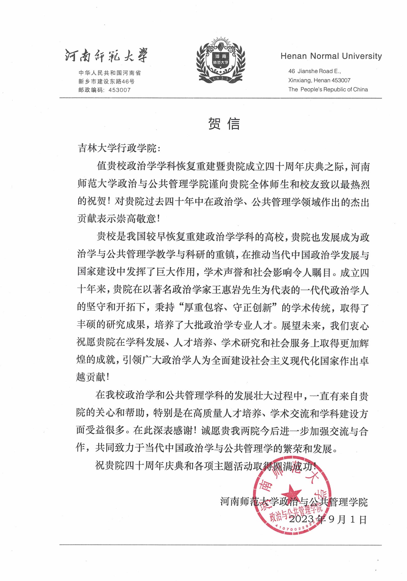 河南师范大学政治与公共管理学院的贺信-吉林大学行政学院 <#webadvjs#>
