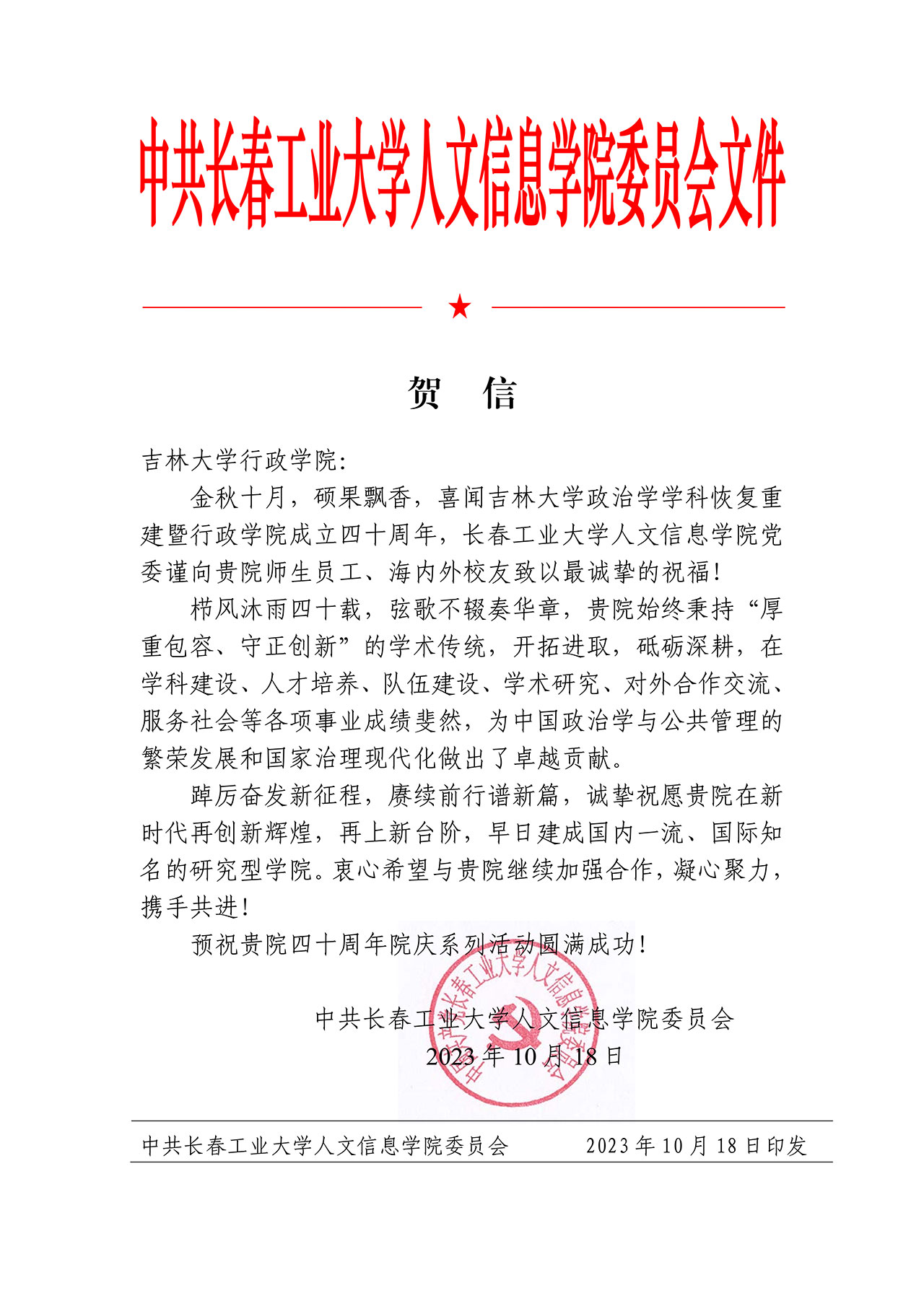 中共长春工业大学人文信息学院委员会的贺信-吉林大学行政学院 <#webadvjs#>