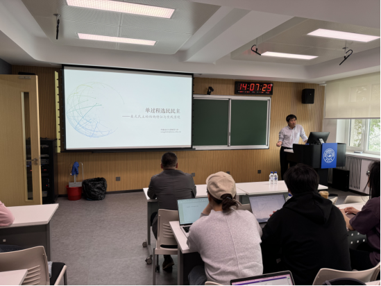在逸夫教学楼304教室开展政治学与公共管理学“名家引领”研究生精品课程(第一期)。天津师范大学副校长、博士生导师佟德志教授应邀担任主讲嘉宾,为同学们带来了题为“单过程选民民主——美式民主的结构特征与实践困境”的课程。
