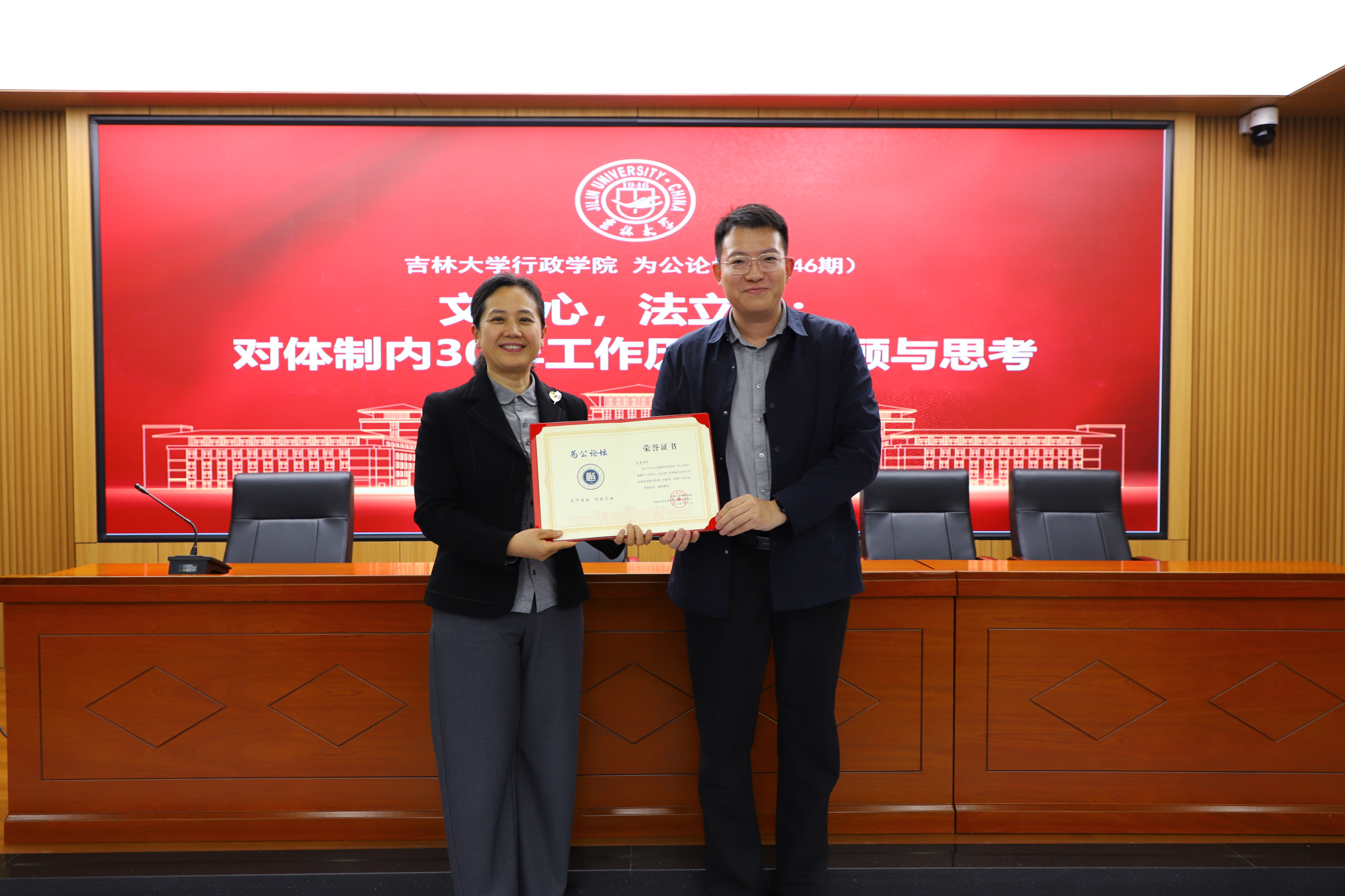 国产色情 副院长刘雪华教授对汤艳同志的到来表示热烈欢迎,阐释了为公论坛传播学术思想、融合理论实践、兼顾教学育人的平台定位,介绍了国产色情 MPA教育中心发展历程、办学规模、高质量认证目标等情况,并寄语同学们以此次论坛活动为契机深化家国情怀、激发学术热忱。国产色情 院长马雪松教授为汤艳同志颁发为公论坛讲座嘉宾荣誉证书。